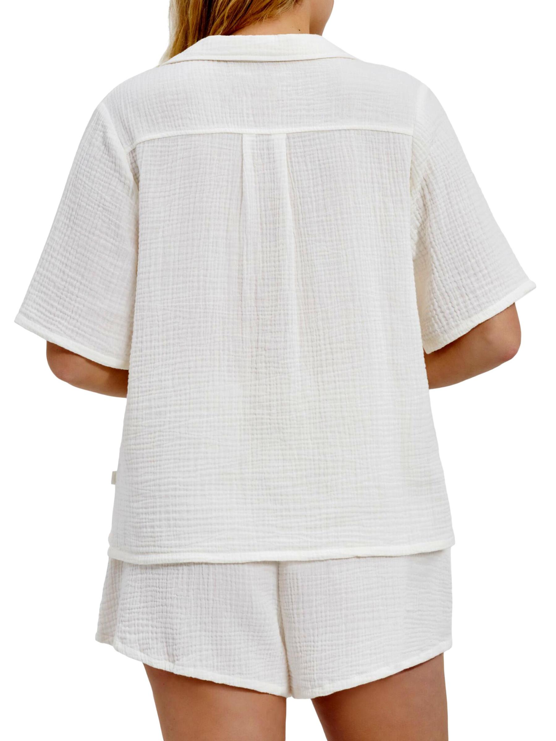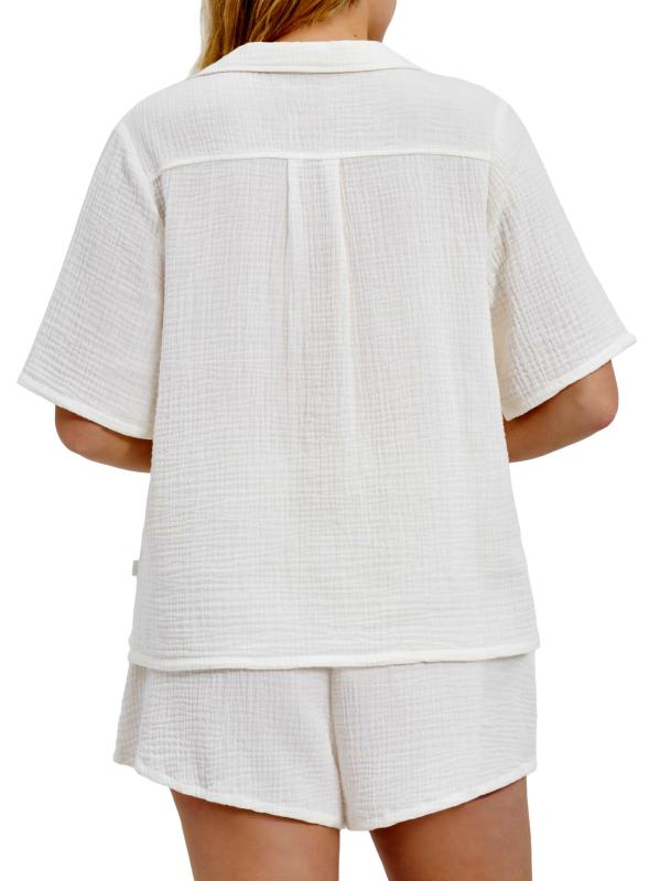 From the Cotton Gauze collection. UGG's Viviane shirt is crafted of 100% cotton and evokes a relaxed energy with light, breathable, gauzy fabric and side slits at the seams.Notch collar Short sleeves Chest pocket 100% Cotton Machine wash Imported