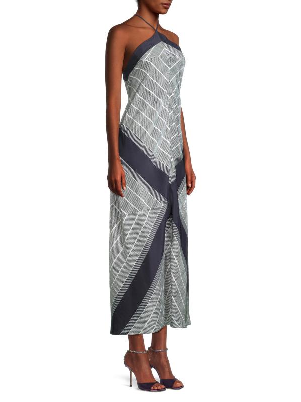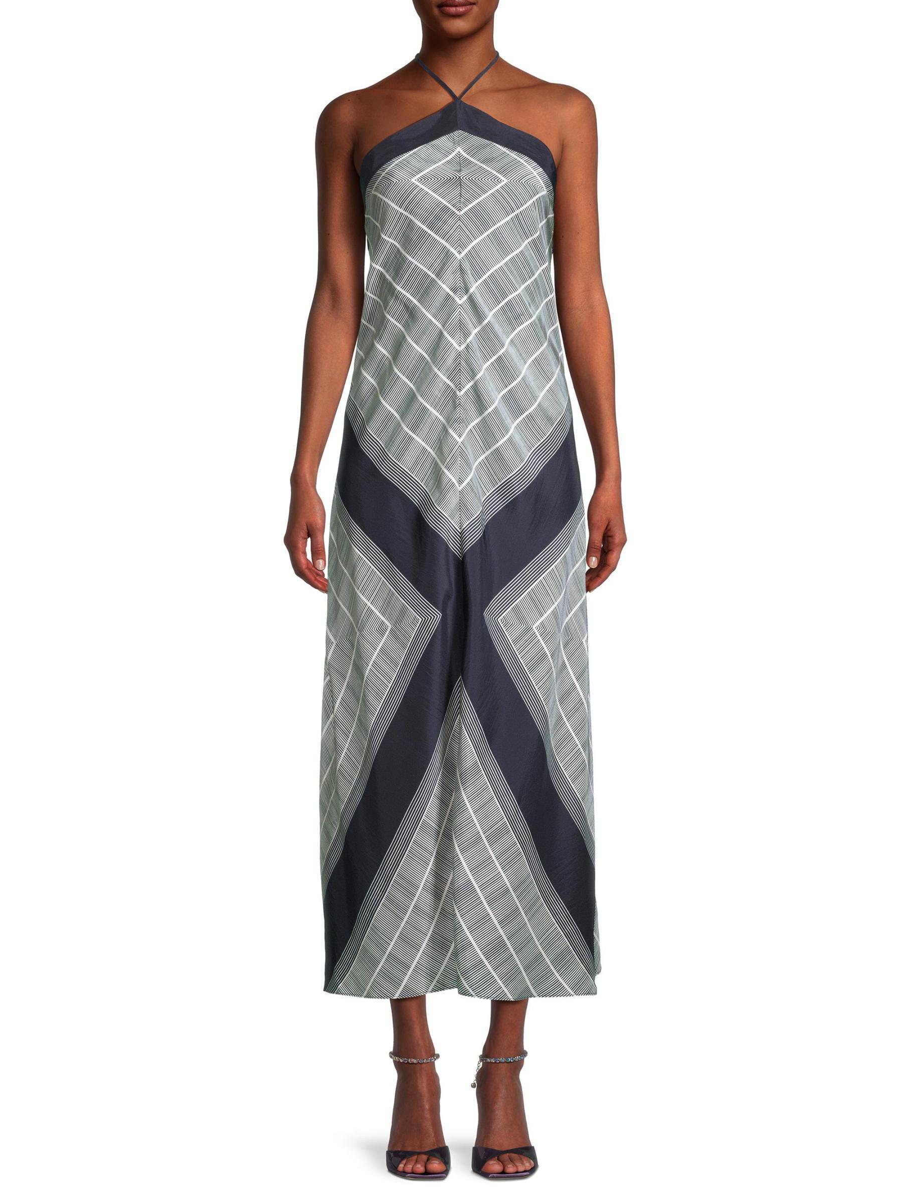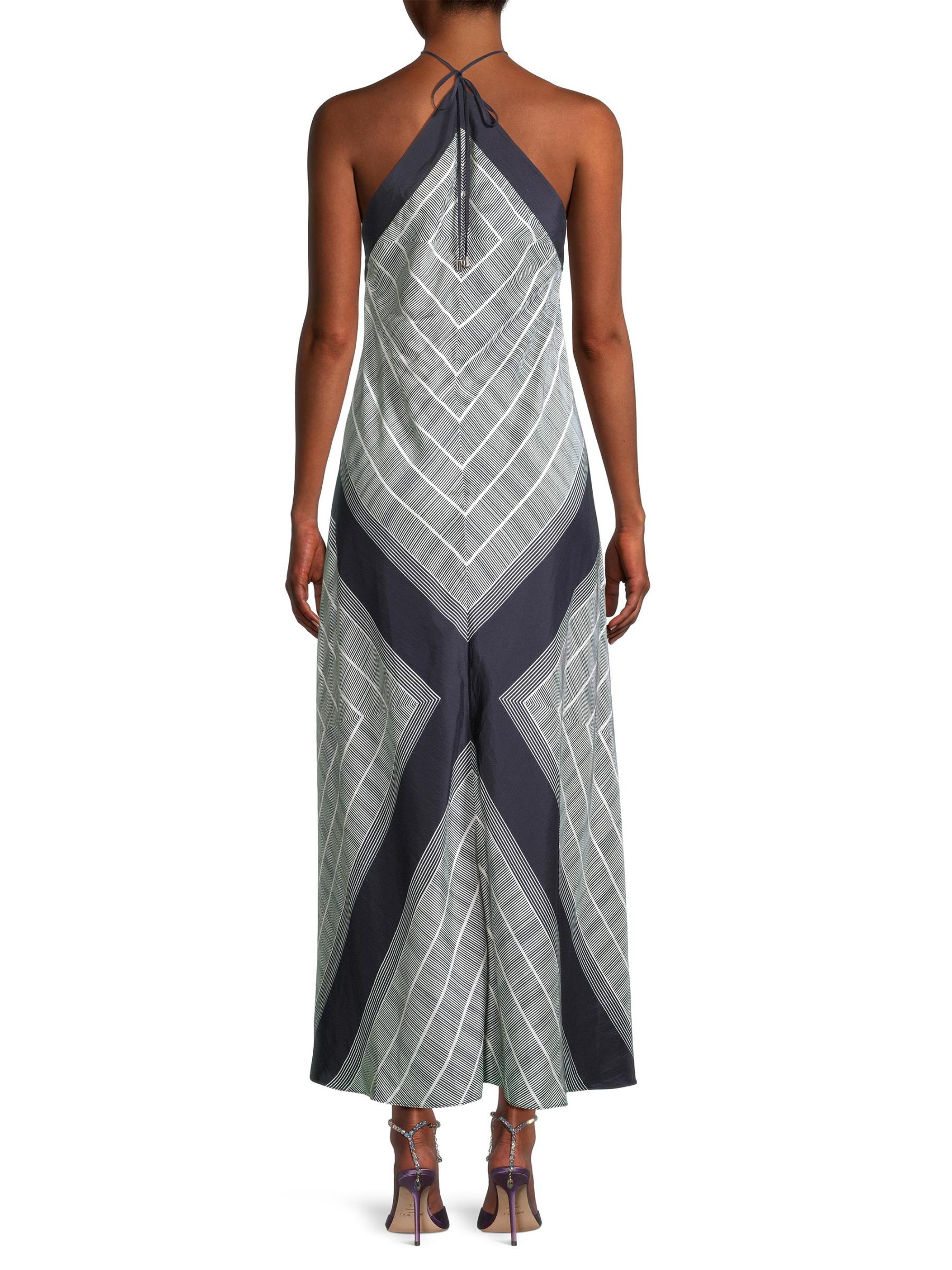 Smart flaunts a a chic striped border print, cut from luxe sandwash silk. This dress features a bias-cut silhoeutte with a halterneck and fine straps.Halterneck Sleeveless Back tie closure 100% Silk Hand wash Imported