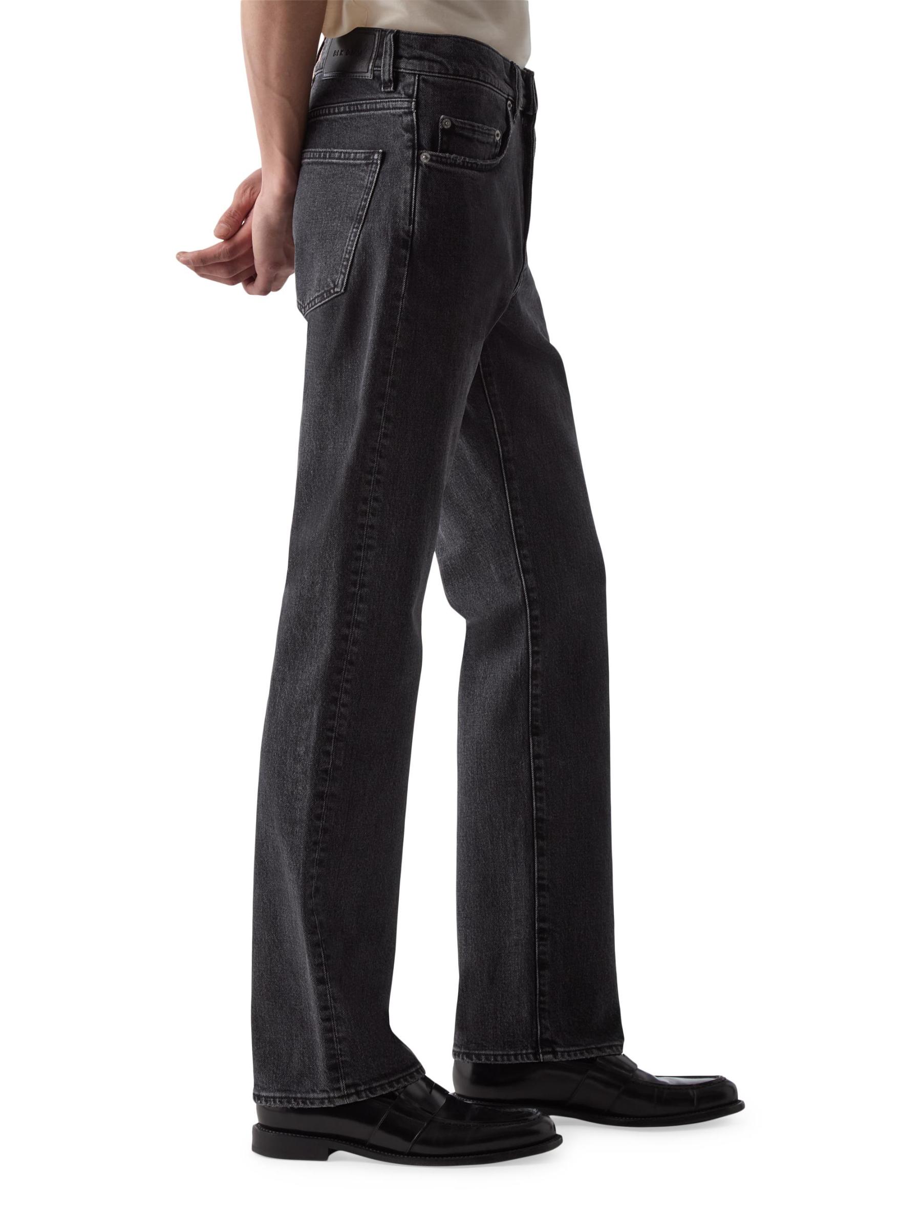 Washed-Denim Mid-Rise Straight-Leg Jeans