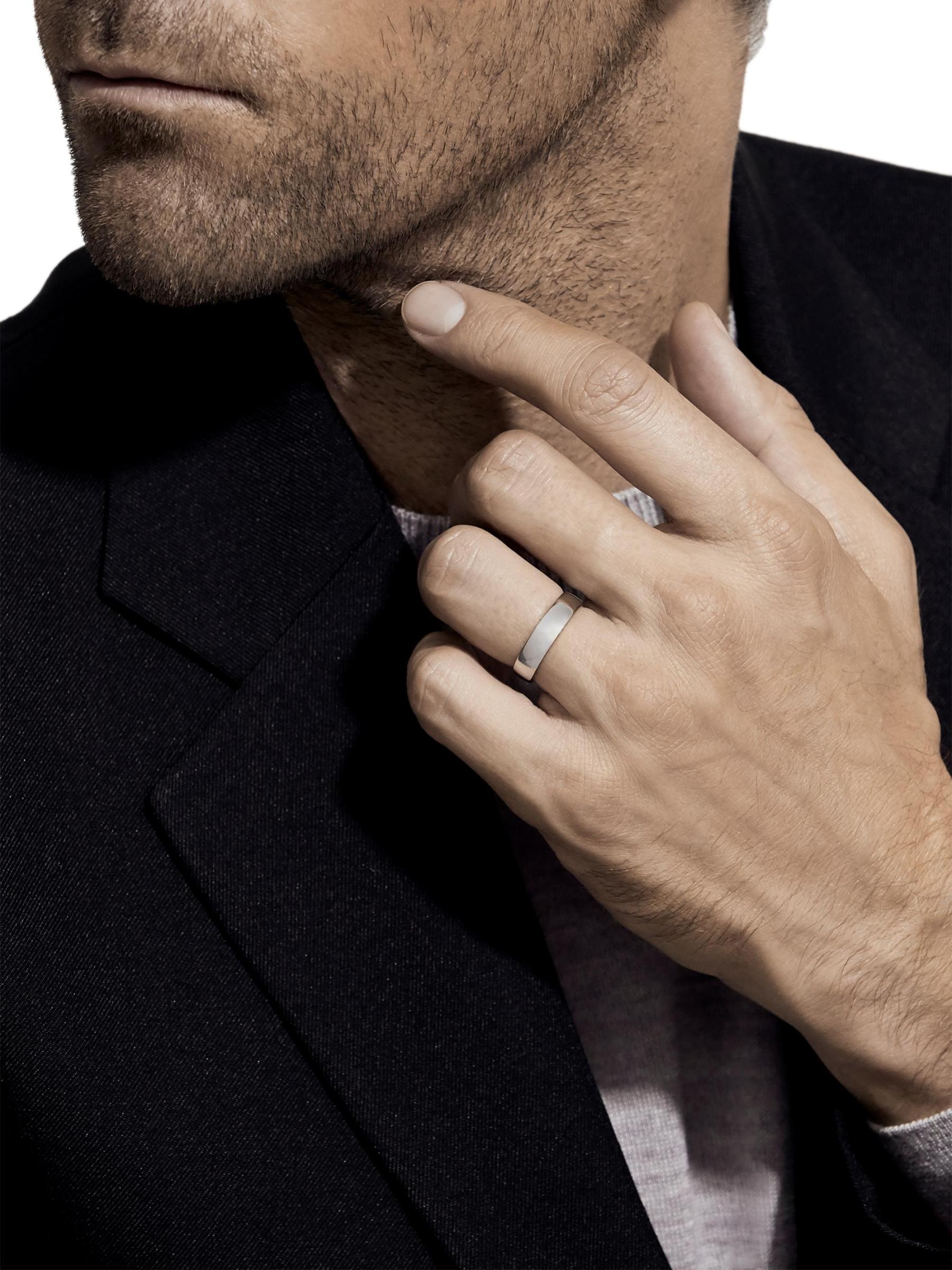 De Beers Jewellers' Wide Court band is crafted of polished platinum. Featuring a classic, minimalist silhouette, this timeless piece is flush-set with a sparkling round natural diamond at the interior.Natural diamond, 0.06 tcw PLATINUM Made in Germany