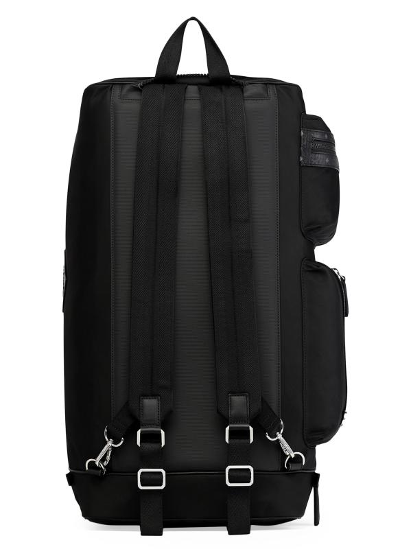 MCM's XL Ottomar Weekender bag features a convertible design which allows it to be worn as a backpack or a duffel bag. This piece is styled with numerous zip pockets at the front and features the brand's logo printed leather trim.Two top handles Adjustable, removable shoulder strap Exterior: two zip pockets Interior: two slip pockets Top zip closure Nylon Imported