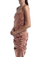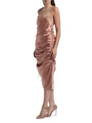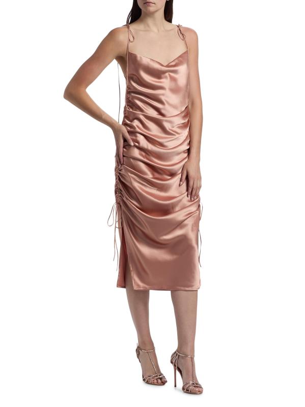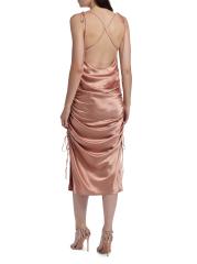 Yasmine Satin Side-Ruched Midi-Dress
