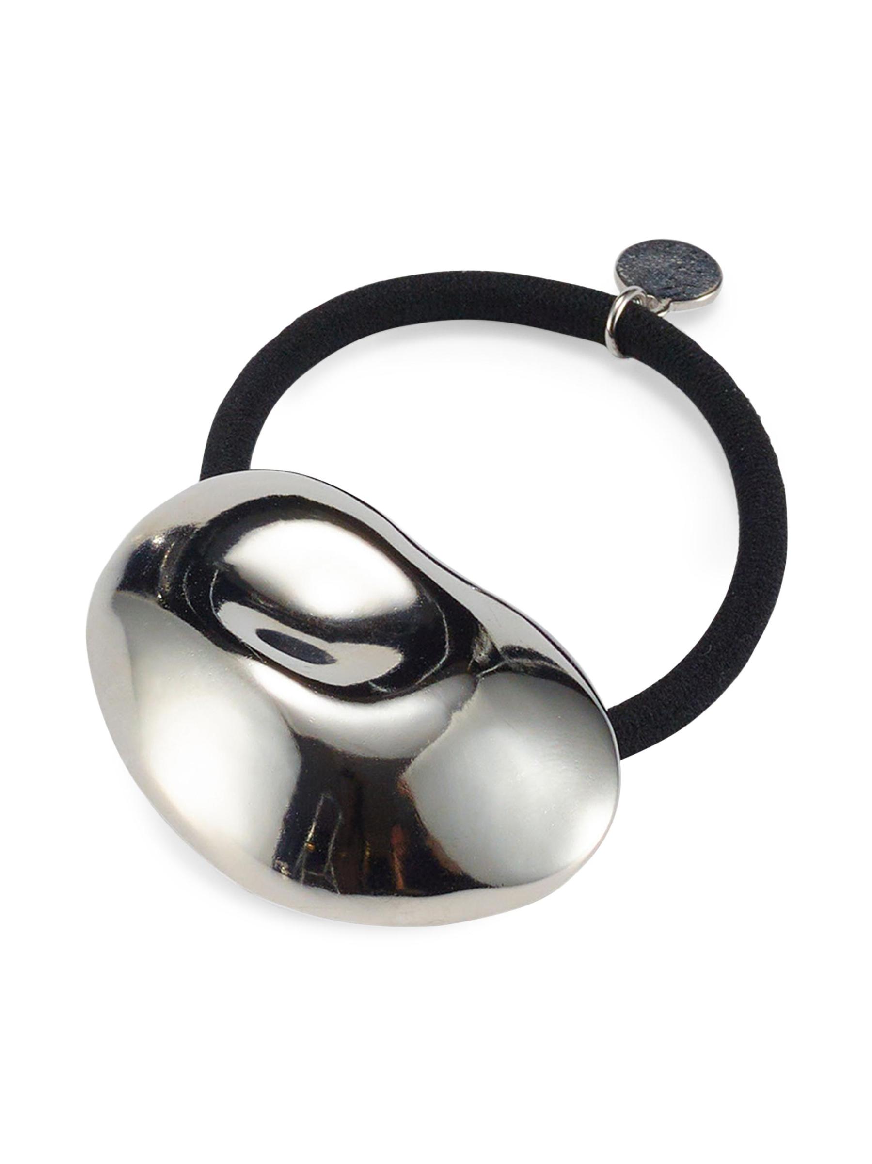 Crafted of brass with a silvertone finish, this Zoe pony cuff from Lelet NY features a logo embossed charm.Brass/elastane Wipe clean Imported